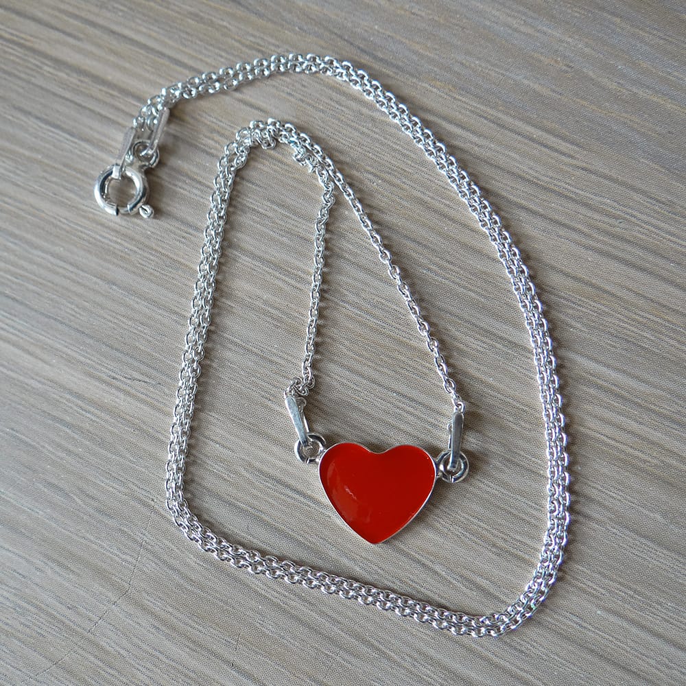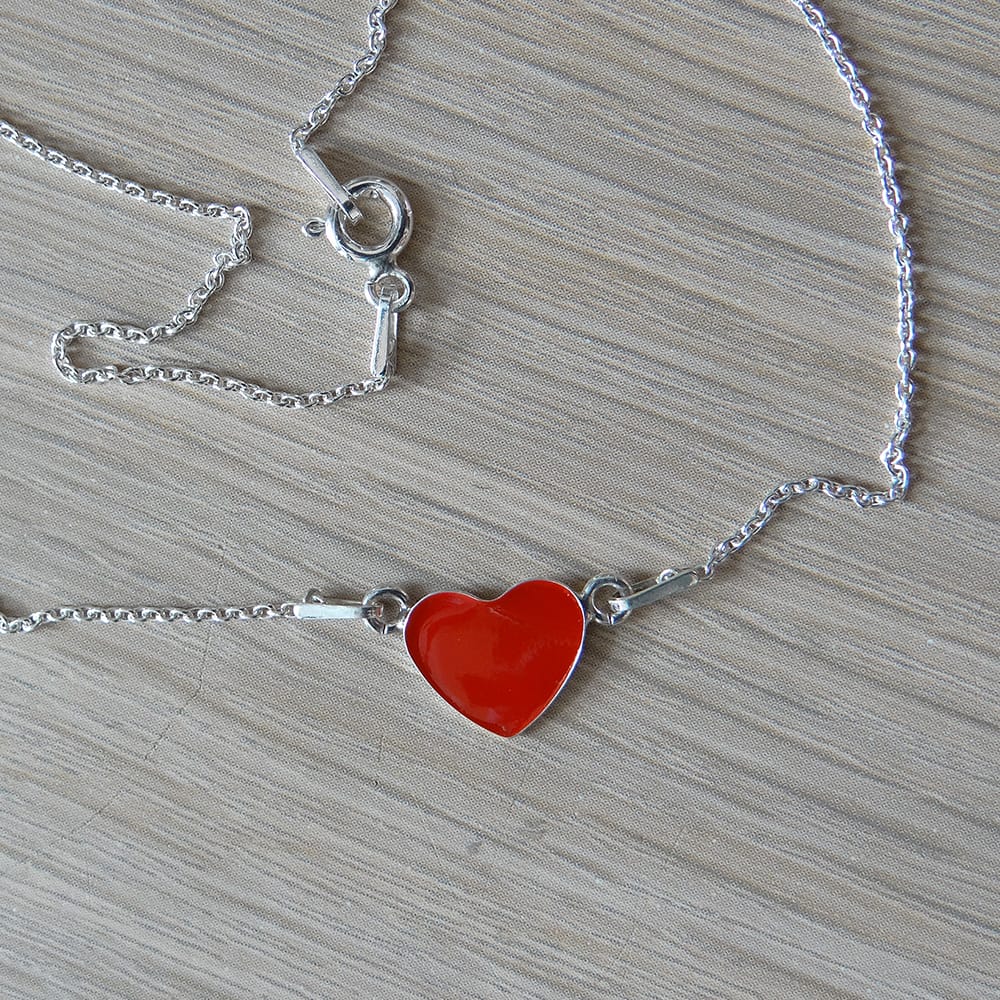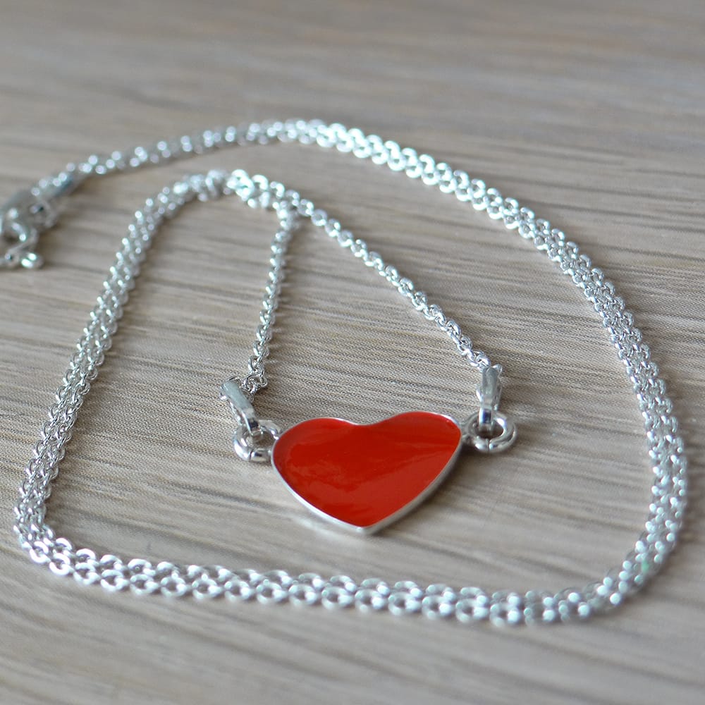 Subtelny naszyjnik z czerwonym sercem pełnym emocji.